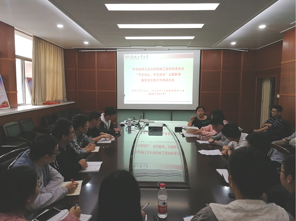 在格物楼308会议室召开了“不忘初心、牢记使命”主题教育基层党支部工作推进会议,院党委相关负责同志、学院主题教育领导小组办公室成员、全体基层党支部书记参加了此次会议。