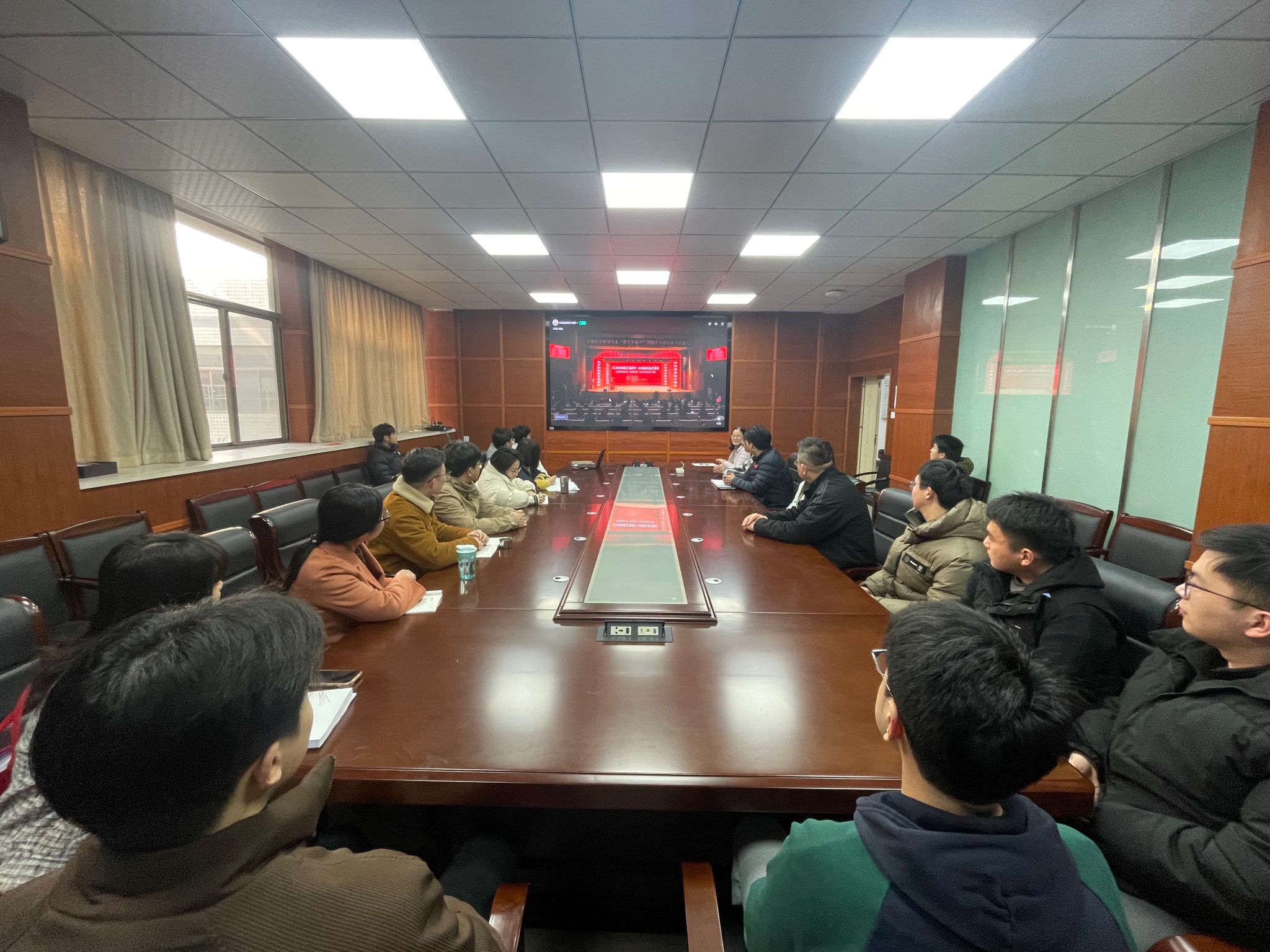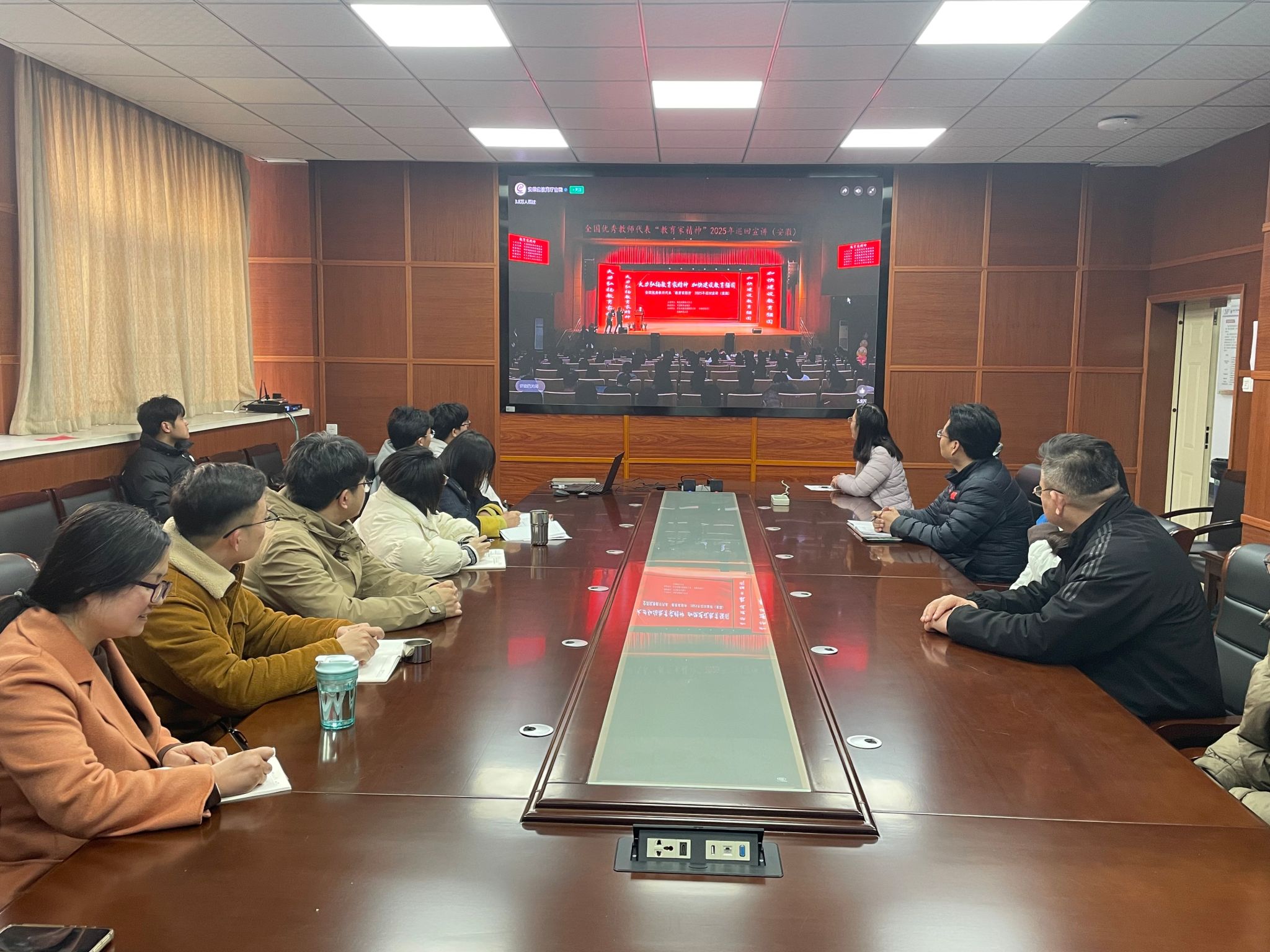 组织教师在格物楼308会议室集中观看教育家精神2025年巡回宣讲活动。