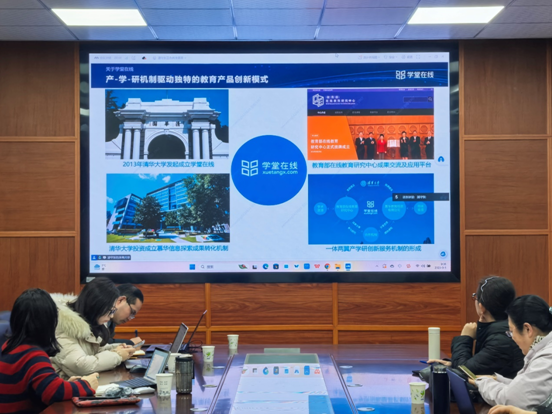 学院研讨会由教学院长赵萍主持,邀请了包括国家级、省级一流课程在内的十余门课程负责人,参加课程建设研讨。学堂在线和超星教学平台的主要负责人,介绍了人工智能背景下AI课程的建设方案,并且解答了老师们关于知识图谱、AI助教、AI工具等课程建设内容的提问。接下来,参会老师就AI课程建课步骤与方法、知识图谱赋能教学、AI工具应用场景、AI数字人制作等主题开展了深入的交流与讨论;搭建了课程建设框架,梳理了课程教学资源,并确定了下一阶段推进计划。